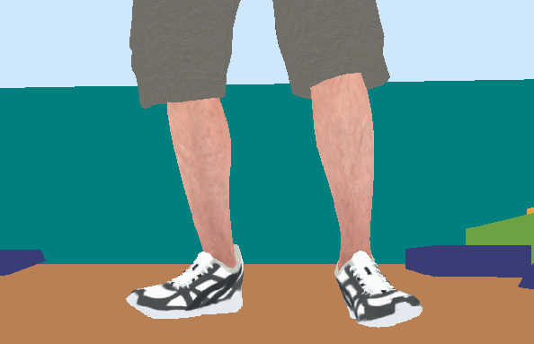 발목 각도에도 문제가 있다. 발목이 최대한 하늘 방향인 world의 +y방향을 보게 만들려했는데, 실제 구현은 발목의 local 좌표계를 기준으로 구현하였다. 따라서 local 좌표계 기준의 +y를 바라보고 있다. 대부분 local의 +y와 world의 +y가 비슷하기에 문제가 없어 보이기도 하지만 발을 기울인 경우 +y가 살짝 비스듬히 기울어 다음과 같이 발목이 하늘을 보지 않는 경우가 발생한다.