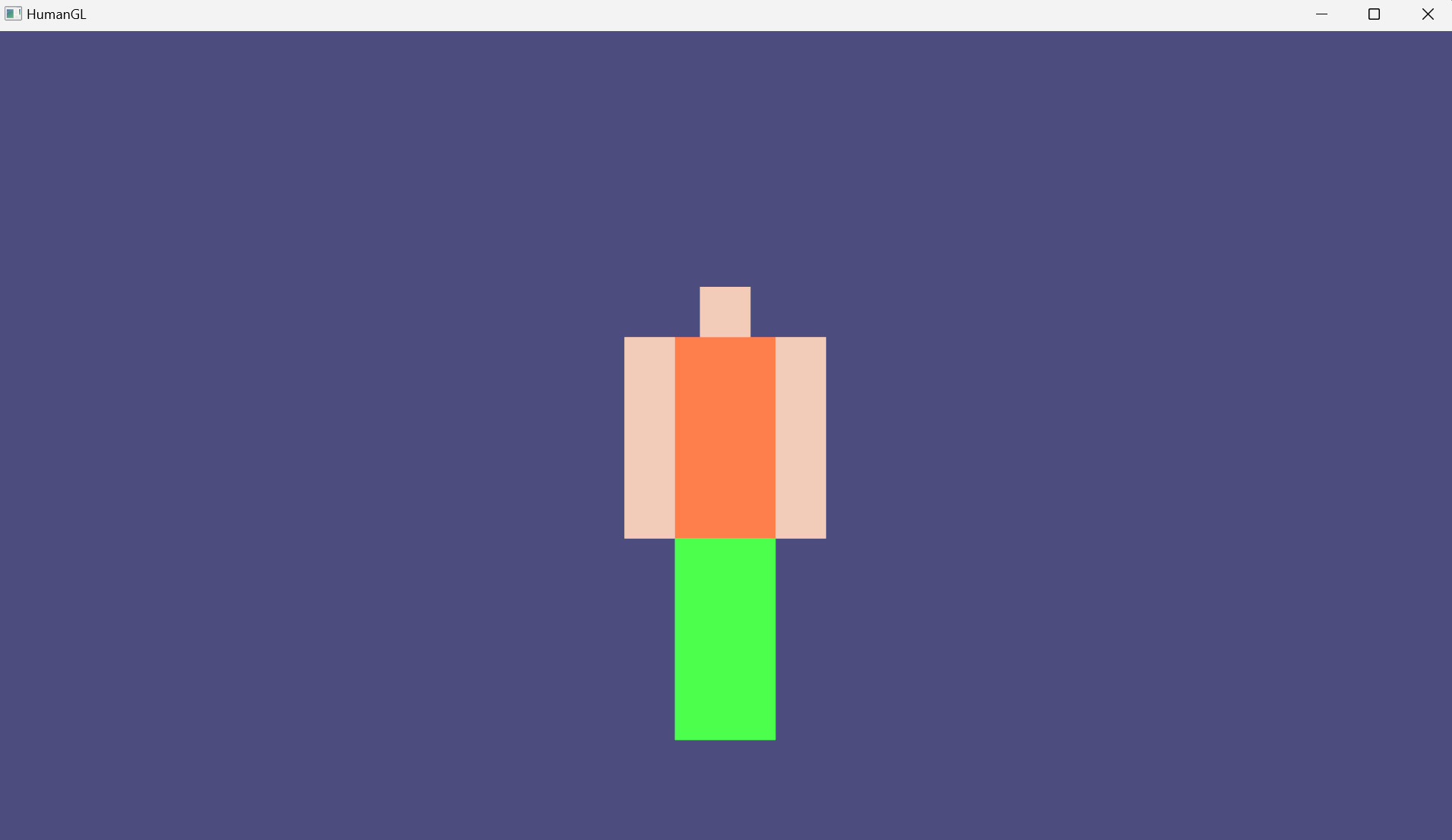 계층적 구조에 맞게 Human Model을 성공적으로 구현한 후, PartInfo에 저장된 색상 정보를 이용해 각 파트를 색칠하여 그린 결과는 다음과 같다.