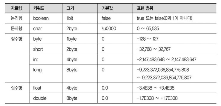 배열을 생성하면 배열의 구성요소는 자료형의 기본값으로 자동 초기화 된다. 각 자료형의 기본값은 다음과 같다.